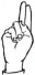 На ћирилици написано ДЕНИС ЛУДОШКИ састоји се из 12 слова [?]. Исписано ћириличном једноручном азбуком за глувонеме: